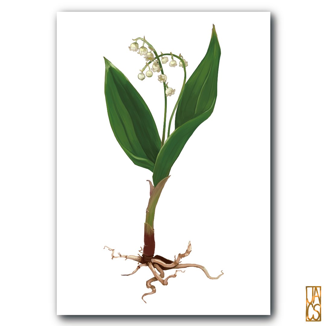 Illustration of Lilies of the Valley printed on museum grade cotton rag cardstock.